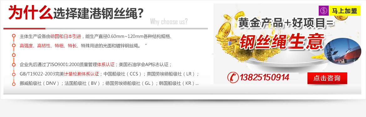 建港鋼絲繩加盟是3年前開始做的,選擇與建港鋼絲繩合作很簡單,當時我想再找一個鋼絲繩品牌,通過朋友介紹